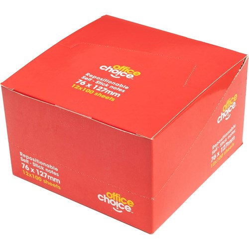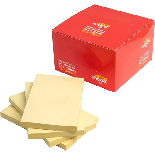 Office Choice Repositionable Sticky Notes 76 x 127mm Yellow 100 Sheets 76 x 127mm Each (Buy 12 for a Pack)