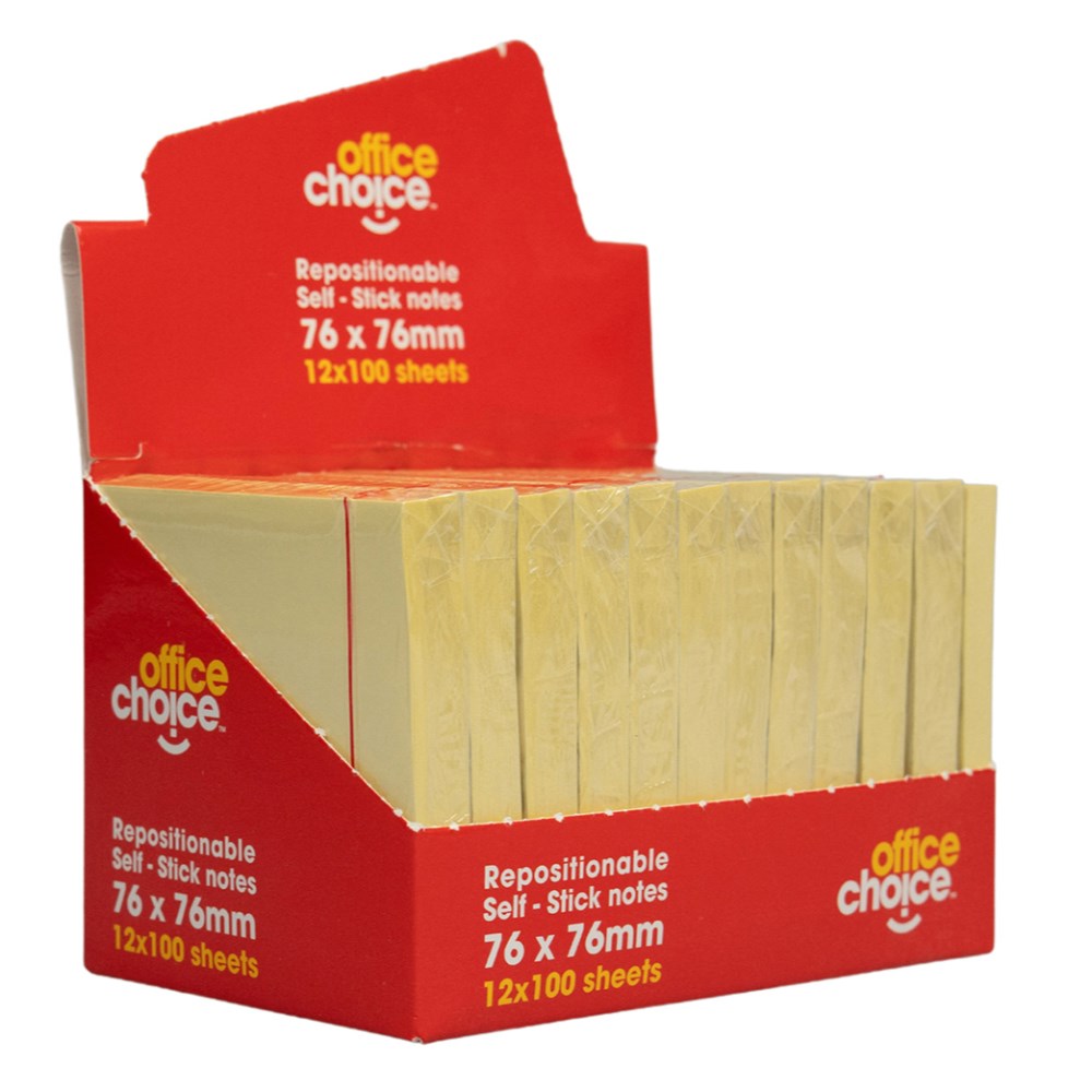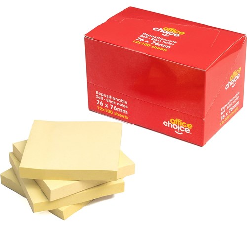 Office Choice Repositionable Sticky Notes 76 x 76mm Yellow 100 Sheets Each (Buy 12 for a Pack)
