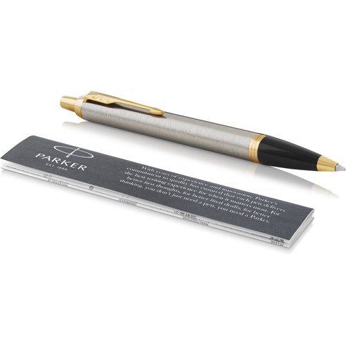 Parker IM Ballpoint Pen Brushed Metal Gold Trim In Giftbox Blue Refill