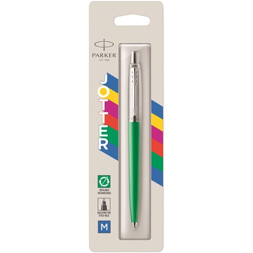 Parker Jotter Originals Ballpoint Pen Green Barrel Stainless Clip Refill Blue
