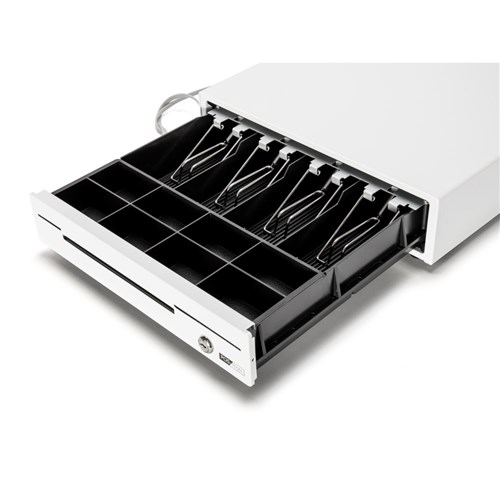 • The cash drawer is a gloss white colour.