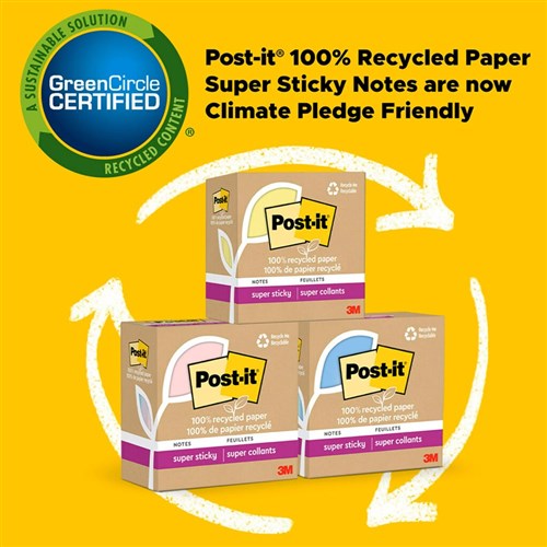 Post-It 654R-12SST Super Sticky Notes Recycled 76mm x 76mm Oasis Pack Of 12 3161774 In Stock Low Stock Low Stock Please See Attributes