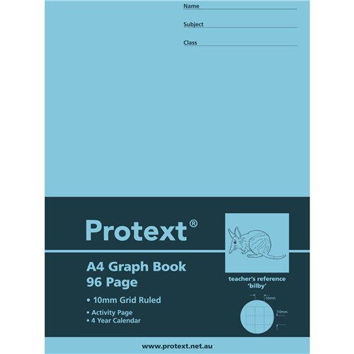 Protext Exercise Books brighten up every school day Protext means Protect the text and each book features a durable, coloured polypropylene cover that eliminates the need for book covering Packed with features including high quality bond paper and crisp line rulings, Protext is a must for every classroom Graph ruled books have slightly thicker 10x10mm lines around smaller blue graph squares