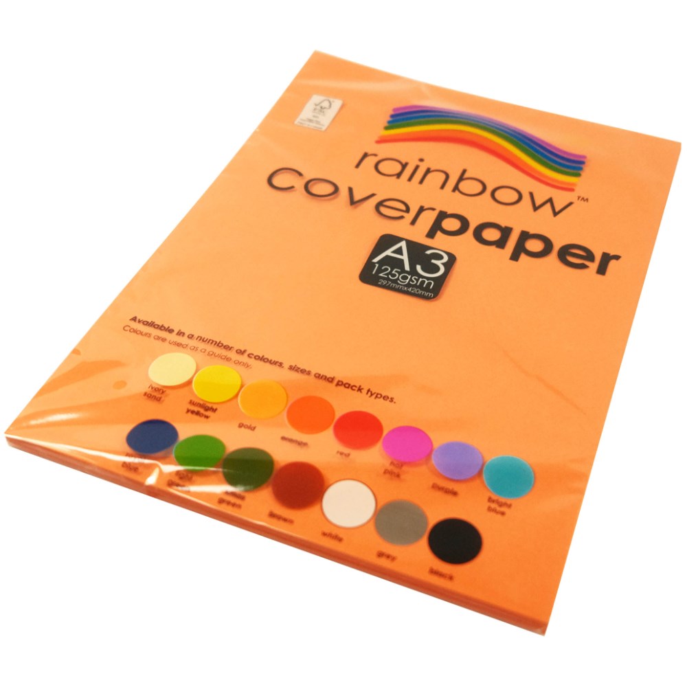 • Rainbow Cover Paper A3 125gsm Saffron Orange 100 Sheets