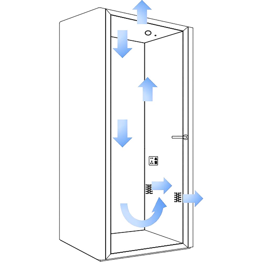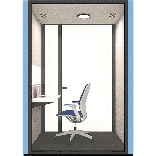 Speech level reduction of 30DB. Air replacement: every 1.2 minutes (total air flow: 1340L/min). Fitted with 1 x LED light (4w 400k). Comes with 2 x ventilation fans, controlled by a door triggered sensor. Fitted with heavy duty castors for easy movement for relocation. Overall Dimension: 1500W x 1200D x 2200mmH. Internal Dimension: 1380W x 1060D x 2080mmH. Doorway Width: 840mm. Wall Mounted Table Dimension: 1040W x 450D x 25mmT. Custom order colours and sizes are also available with an 8-10 weeks lead time. 5 Years Manufacturer's Warranty. Delivery, installation and assembly charges may apply to furniture. Please enquire to confirm.