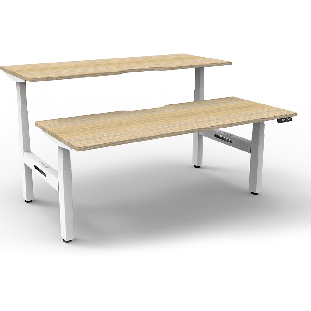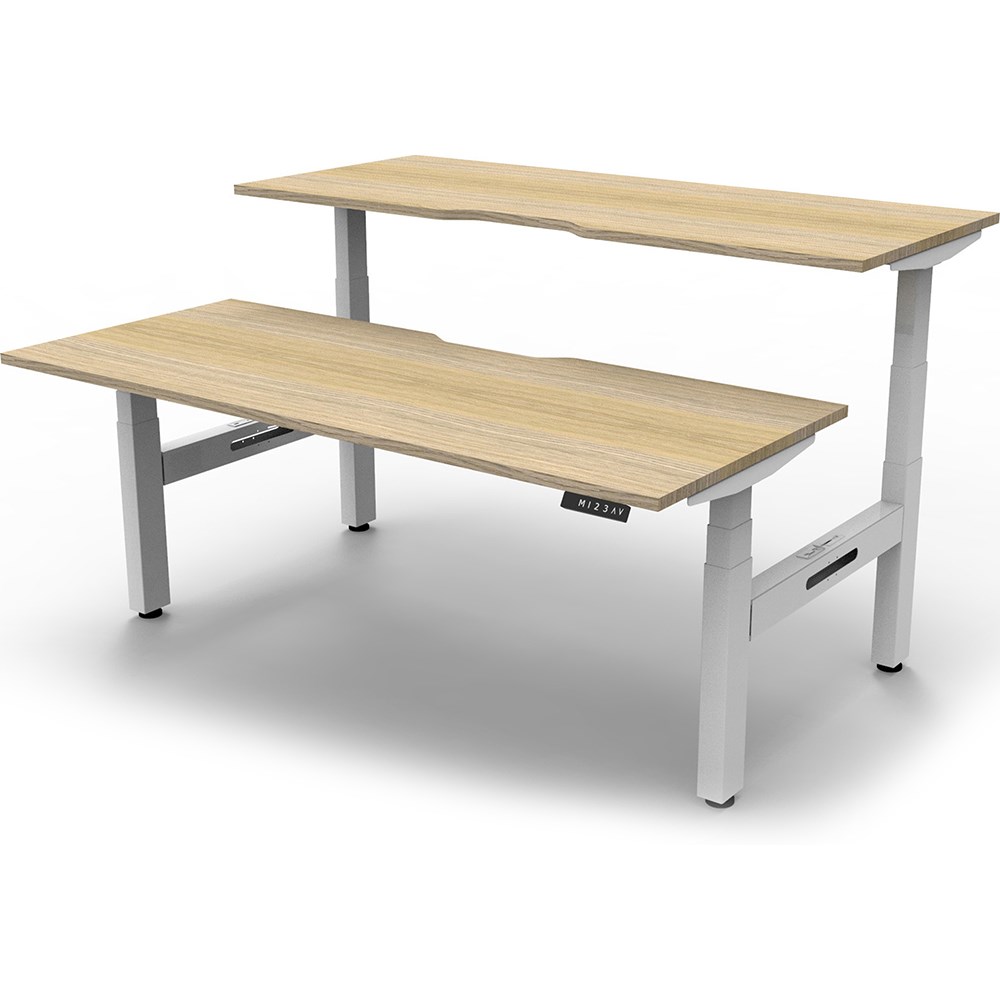 The entire Boost+ range has now been performance tested and is compliant to the AFRDI standards for general safety, strength, durability and stability in all sizes and configurations based on AS/NZS 4442:201. Natural Oak top White frame. Unit Dimensions: 1200 W x 1500 D x 620mm - 1270mm H (Overall). Per User: 1200mm W x 750mm D x 620mm - 1270mm H. E0 rated top, powder coated base. Keypad safety lock and reminder alarm setting. Digital control panel with 3 pre-set positions and LED display panel. Anti- collision and anti-tilt technology. Dual motor 3 stage motorised legs. 140kg weight loading capacity. 10 Year Manufacturer's Warranty. Delivery, installation and assembly charges may apply to furniture. Please enquire to confirm.