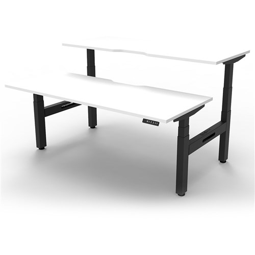 The entire Boost+ range has now been performance tested and is compliant to the AFRDI standards for general safety, strength, durability and stability in all sizes and configurations based on AS/NZS 4442:201. Natural White top Black frame. Unit Dimensions: 1800 W x 1500 D x 620mm - 1270mm H (Overall). Per User:1800mm W x 750mm D x 620mm - 1270mm H. E0 rated top, powder coated base. Keypad safety lock and reminder alarm setting. Digital control panel with 3 pre-set positions and LED display panel. Anti- collision and anti-tilt technology. Dual motor 3 stage motorised legs. 140kg weight loading capacity. 10 Year Manufacturer's Warranty.