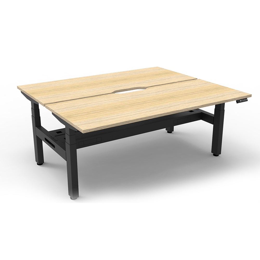 The entire Boost+ range has now been performance tested and is compliant to the AFRDI standards for general safety, strength, durability and stability in all sizes and configurations based on AS/NZS 4442:201. Unit Dimension: 1500mm W x 1500mm D x 1330mm H (Overall). Per User: 1500mm W x 750mm D. Desk Height: 620-1270mm H. Smooth and quiet adjustment at 38mm per second. Min Digital control panel with 3 pre-set positions, LED display panel, keypad safety lock and reminder alarm setting. Natural Oak coloured worksurface with 750mm depth top. 50mm D scallop cut out to rear. Back to Back Workstation with Cable Tray. Dual Motor 3 stage motorised legs. 140kg weight loading capacity. 10 Year Manufacturer's Warranty. Delivery, installation and assembly charges may apply to furniture. Please enquire to confirm.