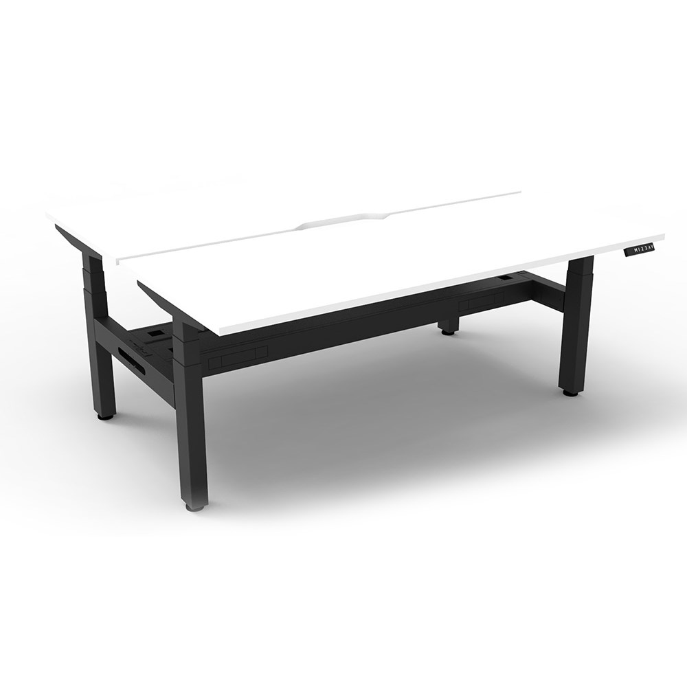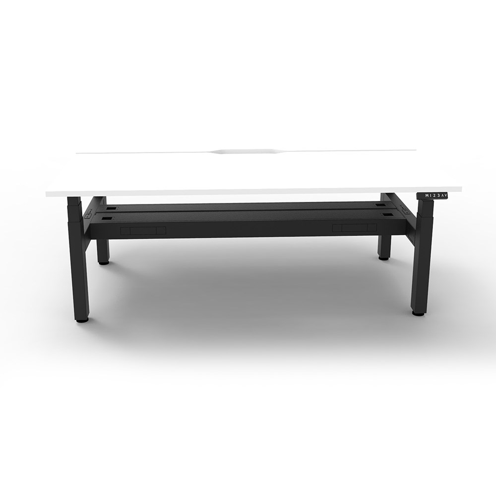 The entire Boost+ range has now been performance tested and is compliant to the AFRDI standards for general safety, strength, durability and stability in all sizes and configurations based on AS/NZS 4442:201. Unit Dimension: 1500mm W x 1500mm D x 1330mm H (Overall). Per User: 1500mm W x 750mm D. Desk Height: 620-1270mm H. Smooth and quiet adjustment at 38mm per second. Min Digital control panel with 3 pre-set positions, LED display panel, keypad safety lock and reminder alarm setting. Natural White coloured worksurface with 750mm depth top. 50mm D scallop cut out to rear. Back to Back Workstation with Cable Tray. Dual Motor 3 stage motorised legs. 140kg weight loading capacity. 10 Year Manufacturer's Warranty. Delivery, installation and assembly charges may apply to furniture. Please enquire to confirm.