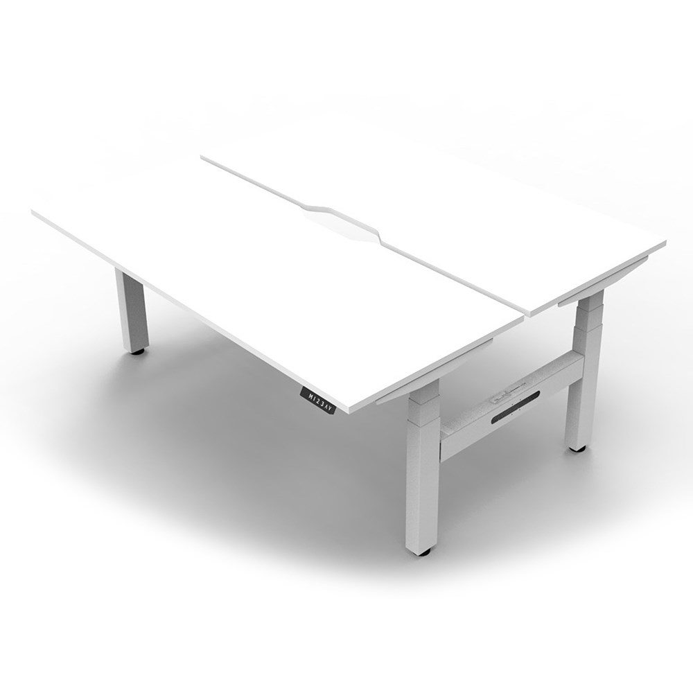 The entire Boost+ range has now been performance tested and is compliant to the AFRDI standards for general safety, strength, durability and stability in all sizes and configurations based on AS/NZS 4442:201. Unit Dimension: 1500mm W x 1500mm D x 1330mm H (Overall). Per User: 1500mm W x 750mm D. Desk Height: 620-1270mm H. Smooth and quiet adjustment at 38mm per second. Min Digital control panel with 3 pre-set positions, LED display panel, keypad safety lock and reminder alarm setting. Natural White coloured worksurface with 750mm depth top. 50mm D scallop cut out to rear. Back to Back Workstation with Cable Tray. Dual Motor 3 stage motorised legs. 140kg weight loading capacity. 10 Year Manufacturer's Warranty. Delivery, installation and assembly charges may apply to furniture. Please enquire to confirm.
