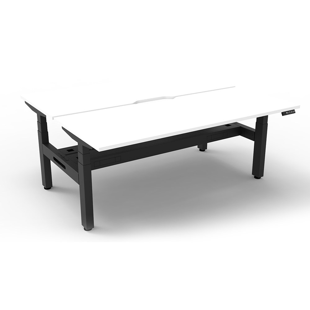 The entire Boost+ range has now been performance tested and is compliant to the AFRDI standards for general safety, strength, durability and stability in all sizes and configurations based on AS/NZS 4442:201. Unit Dimension: 1800mm W x 1500mm D x 1330mm H (Overall). Per User: 1800mm W x 750mm D. Desk Height: 620-1270mm H. Smooth and quiet adjustment at 38mm per second. Min Digital control panel with 3 pre-set positions, LED display panel, keypad safety lock and reminder alarm setting. Natural White coloured worksurface with 750mm depth top. 50mm D scallop cut out to rear. Back to Back Workstation with Cable Tray. Dual Motor 3 stage motorised legs. 140kg weight loading capacity. 10 Year Manufacturer's Warranty. Delivery, installation and assembly charges may apply to furniture. Please enquire to confirm.