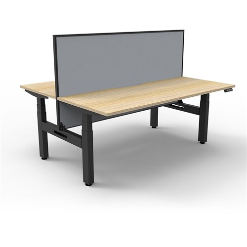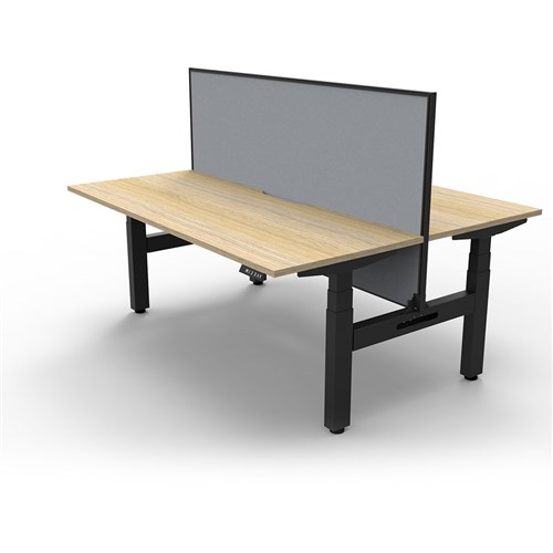 The entire Boost+ range has now been performance tested and is compliant to the AFRDI standards for general safety, strength, durability and stability in all sizes and configurations based on AS/NZS 4442:201. Unit Dimension: 1800mm W x 1500mm D x 1330mm H (Overall). Per User: 1800mm W x 750mm D. Desk Height: 620-1270mm H. Includes pinnable privacy screen in grey fabric with matching black powder coated frame. 900mm H x 30mm T. Smooth and quiet adjustment at 38mm per second. Min Digital control panel with 3 pre-set positions, LED display panel, keypad safety lock and reminder alarm setting. Natural Oak coloured worksurface with 750mm depth top. 50mm D scallop cut out to rear. Back to Back Workstation with Screen. Dual Motor 3 stage motorised legs. 140kg weight loading capacity. 10 Year Manufacturer's Warranty.