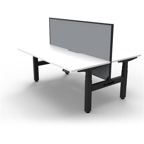 The entire Boost+ range has now been performance tested and is compliant to the AFRDI standards for general safety, strength, durability and stability in all sizes and configurations based on AS/NZS 4442:201. Unit Dimension: 1800mm W x 1500mm D x 1330mm H (Overall). Per User: 1800mm W x 750mm D. Desk Height: 620-1270mm H. Includes pinnable privacy screen in grey fabric with matching black powder coated frame. 900mm H x 30mm T. Smooth and quiet adjustment at 38mm per second. Min Digital control panel with 3 pre-set positions, LED display panel, keypad safety lock and reminder alarm setting. Natural White coloured worksurface with 750mm depth top. 50mm D scallop cut out to rear. Back to Back Workstation with Screen. Dual Motor 3 stage motorised legs. 140kg weight loading capacity. 10 Year Manufacturer's Warranty.