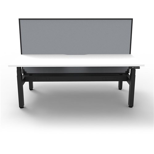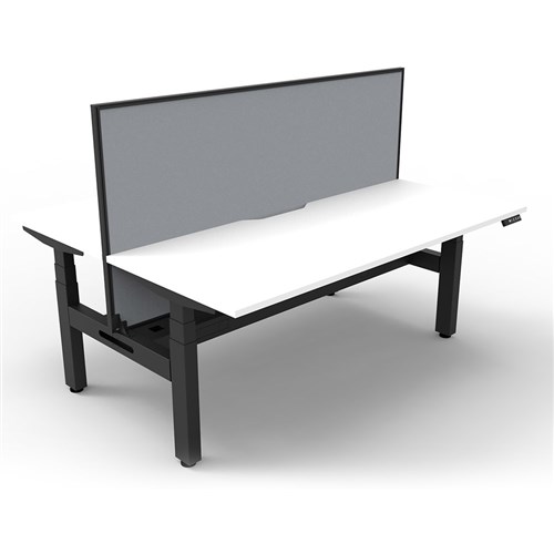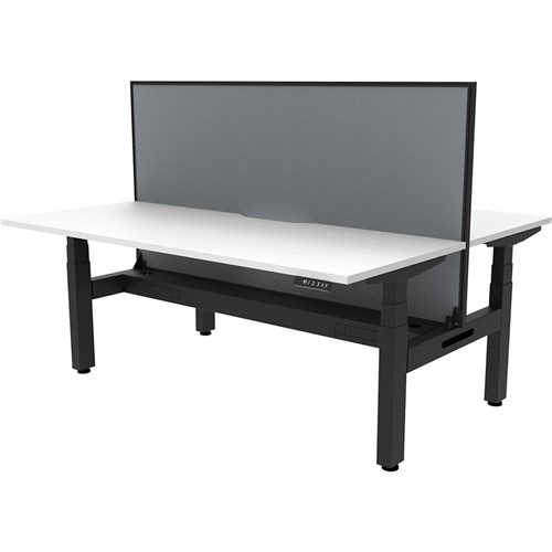 The entire Boost+ range has now been performance tested and is compliant to the AFRDI standards for general safety, strength, durability and stability in all sizes and configurations based on AS/NZS 4442:201. Unit Dimension: 1200mm W x 1500mm D x 1330mm H (Overall). Per User: 1200mm W x 750mm D. Desk Height: 620-1270mm H. Includes pinnable privacy screen in grey fabric with matching black powder coated frame. 900mm H x 30mm T. Smooth and quiet adjustment at 38mm per second. Min Digital control panel with 3 pre-set positions, LED display panel, keypad safety lock and reminder alarm setting. Natural White coloured worksurface with 750mm depth top. 50mm D scallop cut out to rear. Back to Back Workstation with Screen and Cable Tray. Dual motor 3 stage motorised legs. 140kg weight loading capacity. 10 Year Manufacturer's Warranty. Delivery, installation and assembly charges may apply to furniture. Please enquire to confirm.