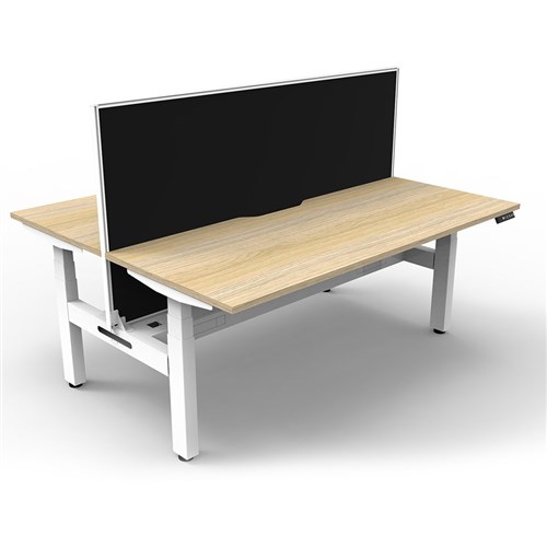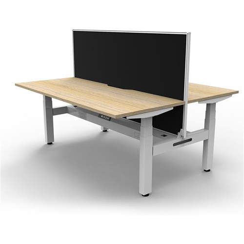 The entire Boost+ range has now been performance tested and is compliant to the AFRDI standards for general safety, strength, durability and stability in all sizes and configurations based on AS/NZS 4442:201. Unit Dimension: 1500mm W x 1500mm D x 1330mm H (Overall). Per User: 1500mm W x 750mm D. Desk Height: 620-1270mm H. Includes pinnable privacy screen in black fabric with matching white powder coated frame. 900mm H x 30mm T. Smooth and quiet adjustment at 38mm per second. Min Digital control panel with 3 pre-set positions, LED display panel, keypad safety lock and reminder alarm setting. Natural Oak coloured worksurface with 750mm depth top. 50mm D scallop cut out to rear. Back to Back Workstation with Screen and Cable Tray. Dual Motor 3 stage motorised legs. 140kg weight loading capacity. 10 Year Manufacturer's Warranty.