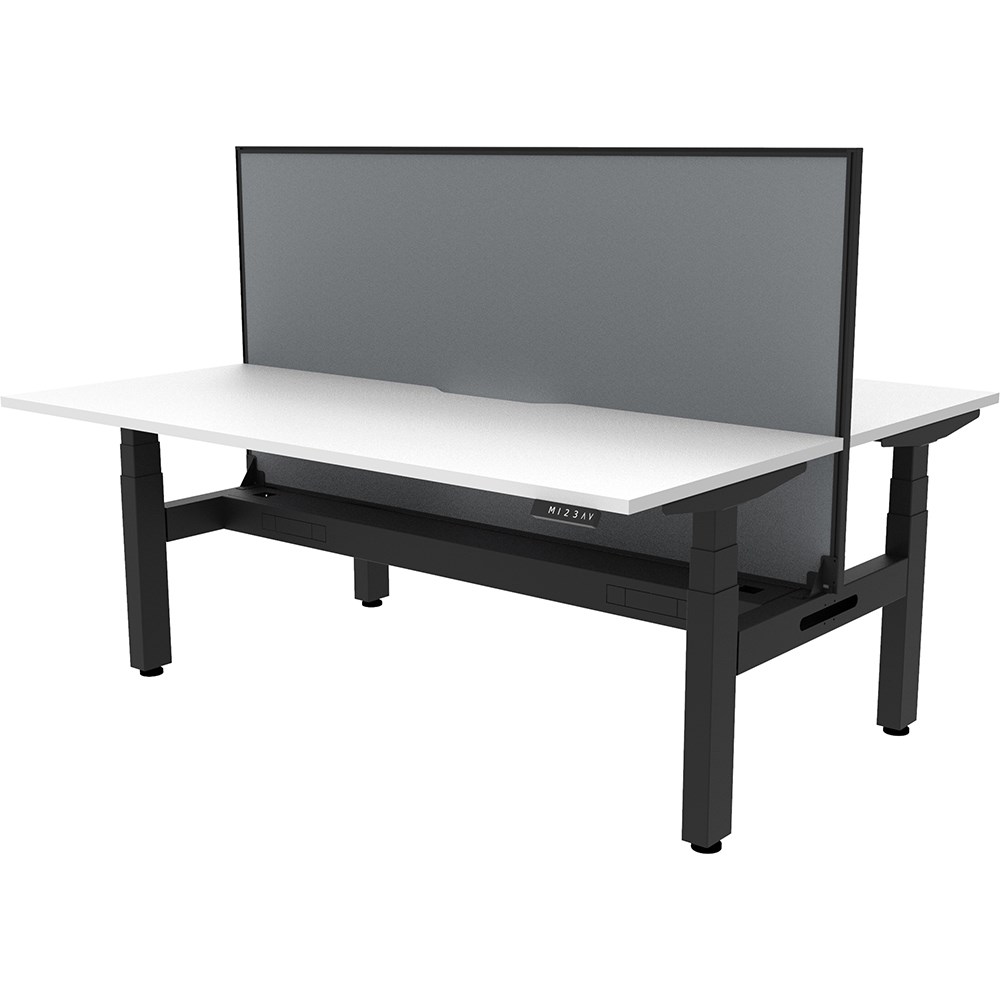 The entire Boost+ range has now been performance tested and is compliant to the AFRDI standards for general safety, strength, durability and stability in all sizes and configurations based on AS/NZS 4442:201. Unit Dimension: 1800mm W x 1500mm D x 1330mm H (Overall). Per User: 1800mm W x 750mm D. Desk Height: 620-1270mm H. Includes pinnable privacy screen in grey fabric with matching black powder coated frame. 900mm H x 30mm T. Smooth and quiet adjustment at 38mm per second. Min Digital control panel with 3 pre-set positions, LED display panel, keypad safety lock and reminder alarm setting. Natural White coloured worksurface with 750mm depth top. 50mm D scallop cut out to rear. Back to Back Workstation with Screen and Cable Tray. Dual Motor 3 stage motorised legs. 140kg weight loading capacity. 10 Year Manufacturer's Warranty.