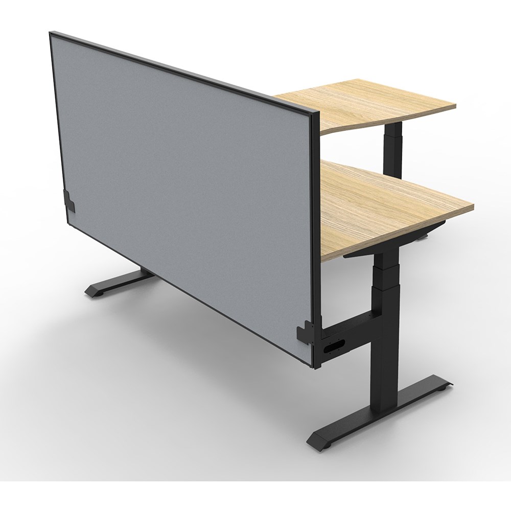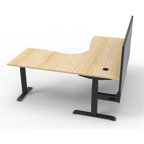 The entire Boost+ range has now been performance tested and is compliant to the AFRDI standards for general safety, strength, durability and stability in all sizes and configurations based on AS/NZS 4442:201. Unit Dimension:1500mm W x 1500mm W x 750mm D x 620mm - 1270mm H. Includes pinnable privacy screen in grey fabric with matching black powder coated frame. 900mm H x 30mm T. Smooth and quiet adjustment at 38mm per second. Min Digital control panel with 3 pre-set positions, LED display panel, keypad safety lock and reminder alarm setting. Natural Oak coloured worksurface with 750mm depth top. 50mm D scallop cut out to rear. Dual Motor 3 stage motorised legs. Corner Workstation with Screen. 140kg weight loading capacity. 10 Year Manufacturer's Warranty.