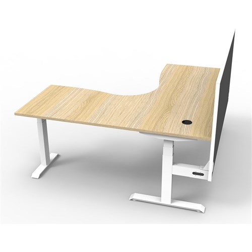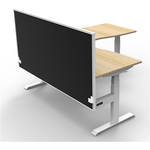 The entire Boost+ range has now been performance tested and is compliant to the AFRDI standards for general safety, strength, durability and stability in all sizes and configurations based on AS/NZS 4442:201. Unit Dimension:1500mm W x 1500mm W x 750mm D x 620mm - 1270mm H. Includes pinnable privacy screen in black fabric with matching white powder coated frame. 900mm H x 30mm T. Smooth and quiet adjustment at 38mm per second. Min Digital control panel with 3 pre-set positions, LED display panel, keypad safety lock and reminder alarm setting. Natural Oak coloured worksurface with 750mm depth top. 50mm D scallop cut out to rear. Dual Motor 3 stage motorised legs. Corner Workstation with Screen. 140kg weight loading capacity. 10 Year Manufacturer's Warranty.