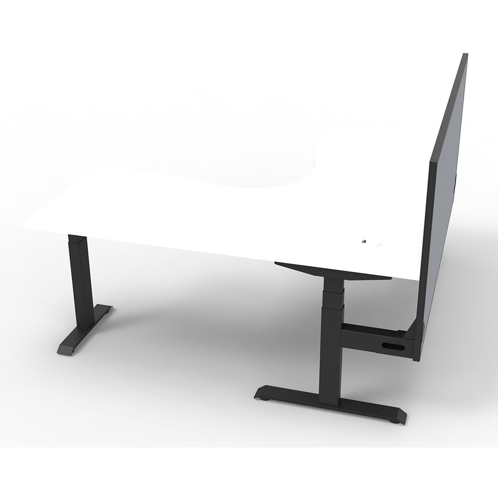 The entire Boost+ range has now been performance tested and is compliant to the AFRDI standards for general safety, strength, durability and stability in all sizes and configurations based on AS/NZS 4442:201. Unit Dimension:1500mm W x 1500mm W x 750mm D x 620mm - 1270mm H. Includes pinnable privacy screen in grey fabric with matching black powder coated frame. 900mm H x 30mm T. Smooth and quiet adjustment at 38mm per second. Min Digital control panel with 3 pre-set positions, LED display panel, keypad safety lock and reminder alarm setting. Natural White coloured worksurface with 750mm depth top. 50mm D scallop cut out to rear. Dual Motor 3 stage motorised legs. Corner Workstation with Screen. 140kg weight loading capacity. 10 Year Manufacturer's Warranty.