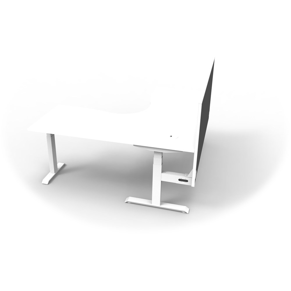 • Dual Motor 3 stage motorised legs. Corner Workstation with screen. 140kg weight loading capacity.