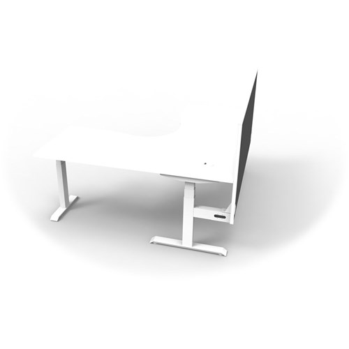 The entire Boost+ range has now been performance tested and is compliant to the AFRDI standards for general safety, strength, durability and stability in all sizes and configurations based on AS/NZS 4442:201. Unit Dimension:1500mm W x 1500mm W x 750mm D x 620mm - 1270mm H. Includes pinnable privacy screen in black fabric with matching white powder coated frame. 900mm H x 30mm T. Smooth and quiet adjustment at 38mm per second. Min Digital control panel with 3 pre-set positions, LED display panel, keypad safety lock and reminder alarm setting. Natural White coloured worksurface with 750mm depth top. 50mm D scallop cut out to rear. Dual Motor 3 stage motorised legs. Corner Workstation with Screen. 140kg weight loading capacity. 10 Year Manufacturer's Warranty.