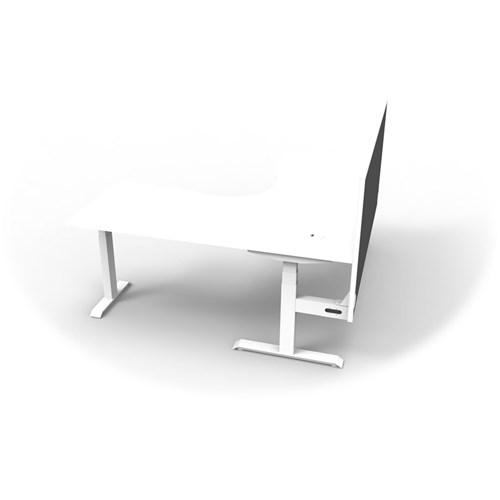 The entire Boost+ range has now been performance tested and is compliant to the AFRDI standards for general safety, strength, durability and stability in all sizes and configurations based on AS/NZS 4442:201. Unit Dimension:1800mm W x 1800mm W x 750mm D x 620mm - 1270mm H. Includes pinnable privacy screen in black fabric with matching white powder coated frame. 900mm H x 30mm T. Smooth and quiet adjustment at 38mm per second. Min Digital control panel with 3 pre-set positions, LED display panel, keypad safety lock and reminder alarm setting. Natural White coloured worksurface with 750mm depth top. 50mm D scallop cut out to rear. Dual Motor 3 stage motorised legs. Corner workstation with screen. 140kg weight loading capacity. 10 Year Manufacturer's Warranty.