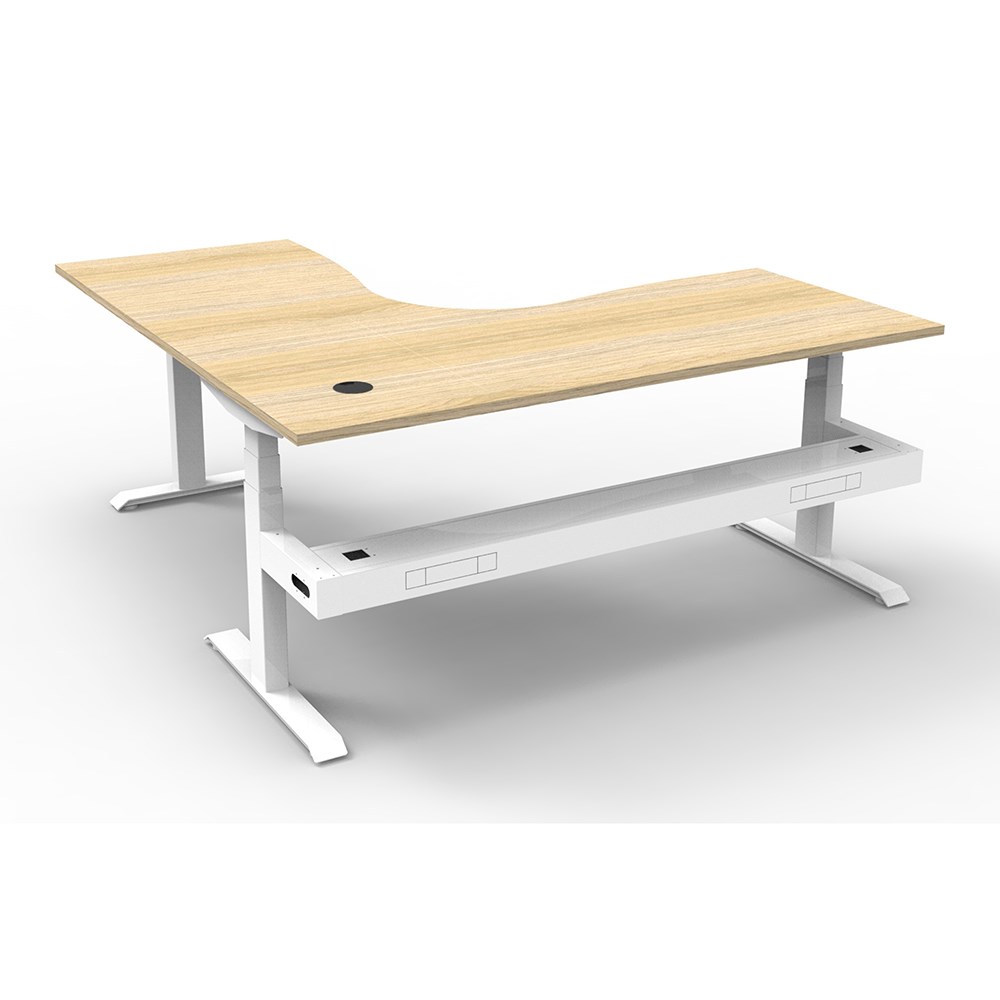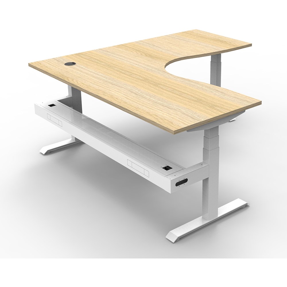 The entire Boost+ range has now been performance tested and is compliant to the AFRDI standards for general safety, strength, durability and stability in all sizes and configurations based on AS/NZS 4442:201. Natural Oak top White frame. Includes cable tray. Unit Dimensions:1500W x 1500W x 750D x 620mm - 1270mmH. E0 rated top, powder coated base. Keypad safety lock and reminder alarm setting. Digital control panel with 3 pre-set positions and LED display panel. Anti- collision and anti-tilt technology. Dual motor 3 stage motorised legs. 140kg weight loading capacity. 10 Year Manufacturer's Warranty. Delivery, installation and assembly charges may apply to furniture. Please enquire to confirm.