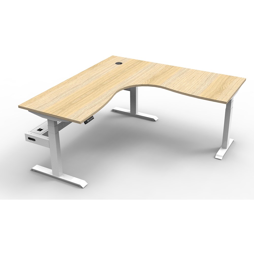 The entire Boost+ range has now been performance tested and is compliant to the AFRDI standards for general safety, strength, durability and stability in all sizes and configurations based on AS/NZS 4442:201. Natural Oak top White frame. Includes cable tray. Unit Dimensions: 1800W x 1500W x 750D x 620mm - 1270mmH. E0 rated top, powder coated base. Keypad safety lock and reminder alarm setting. Digital control panel with 3 pre-set positions and LED display panel. Anti- collision and anti-tilt technology. Dual motor 3 stage motorised legs. 140kg weight loading capacity. 10 Year Manufacturer's Warranty.