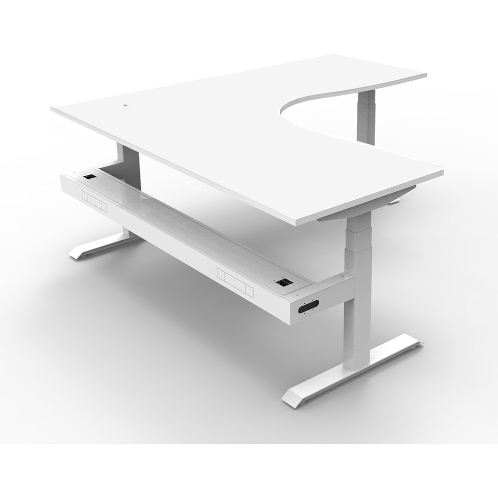 The entire Boost+ range has now been performance tested and is compliant to the AFRDI standards for general safety, strength, durability and stability in all sizes and configurations based on AS/NZS 4442:201. Natural White top White frame. Includes cable tray. Unit Dimensions: 1800W x 1500W x 750D x 620mm - 1270mmH. E0 rated top, powder coated base. Keypad safety lock and reminder alarm setting. Digital control panel with 3 pre-set position and LED display panel. Anti- collision and anti-tilt technology. Dual motor 3 stage motorised legs. 140kg weight loading capacity. 10 Year Manufacturer's Warranty.