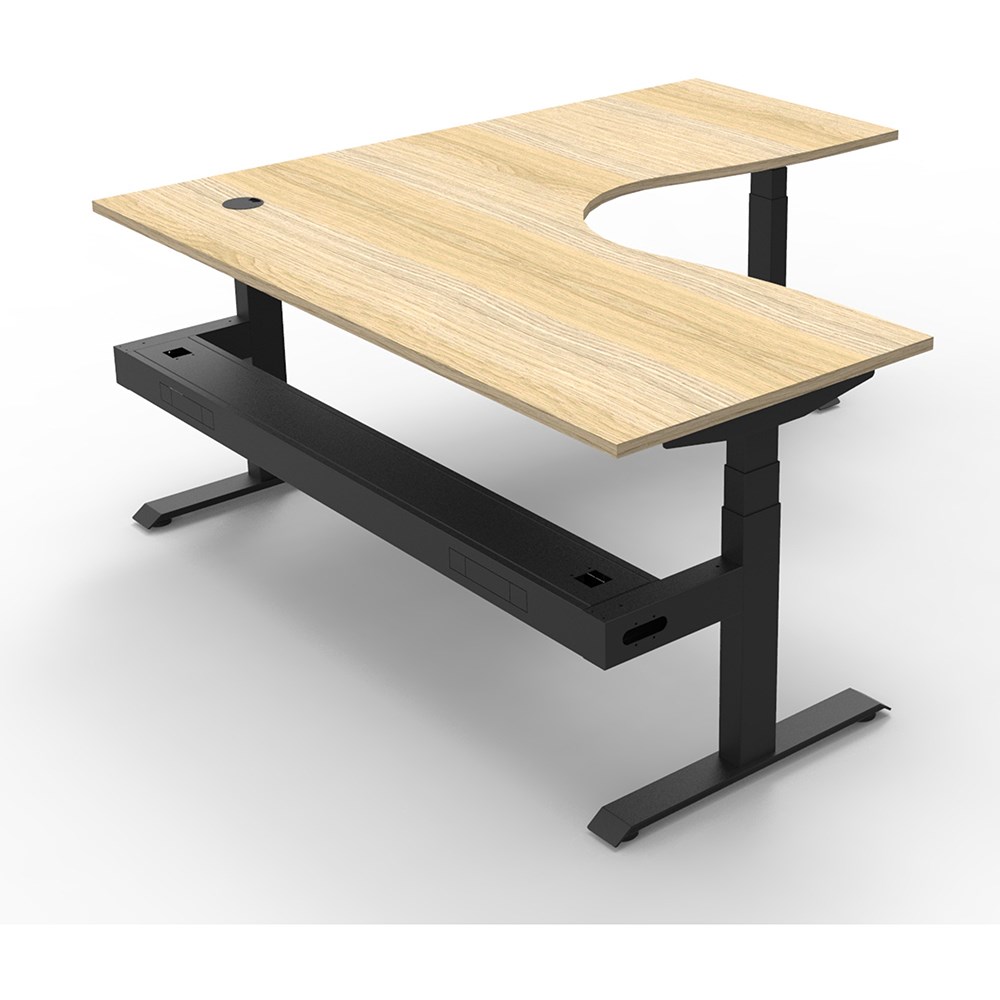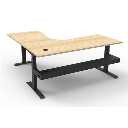 The entire Boost+ range has now been performance tested and is compliant to the AFRDI standards for general safety, strength, durability and stability in all sizes and configurations based on AS/NZS 4442:201. Natural Oak top Black frame. Includes cable tray. Unit Dimensions: 1800W x 1800W x 750D x 620mm - 1270mmH. E0 rated top, powder coated base. Keypad safety lock and reminder alarm setting. Digital control panel with 3 pre-set positions and LED display panel. Anti- collision and anti-tilt technology. Dual motor 3 stage motorised legs. 140kg weight loading capacity. 10 Year Manufacturer's Warranty.