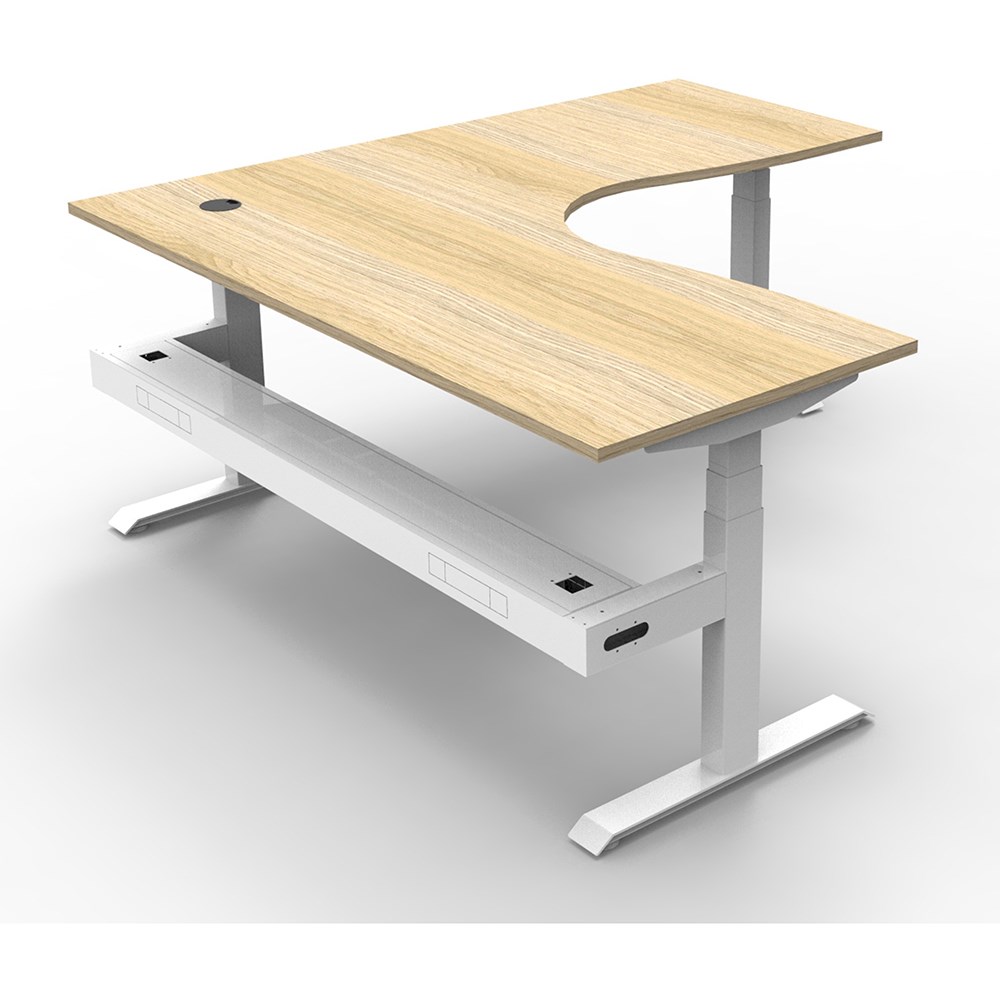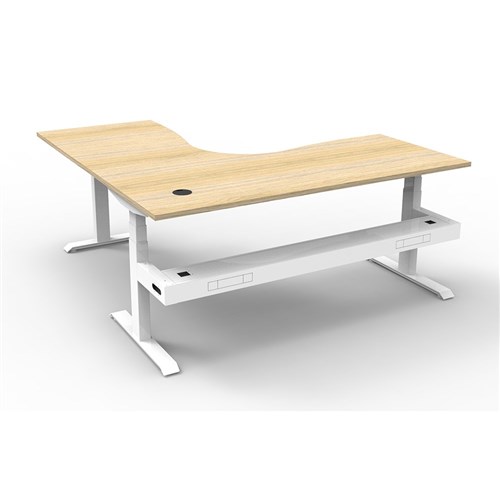 The entire Boost+ range has now been performance tested and is compliant to the AFRDI standards for general safety, strength, durability and stability in all sizes and configurations based on AS/NZS 4442:201. Natural Oak top White frame. Includes cable tray. Unit Dimensions: 1800W x 1800W x 750D x 620mm - 1270mmH. E0 rated top, powder coated base. Keypad safety lock and reminder alarm setting. Digital control panel with 3 pre-set positions and LED display panel. Anti- collision and anti-tilt technology. Dual motor 3 stage motorised legs. 140kg weight loading capacity. 10 Year Manufacturer's Warranty.