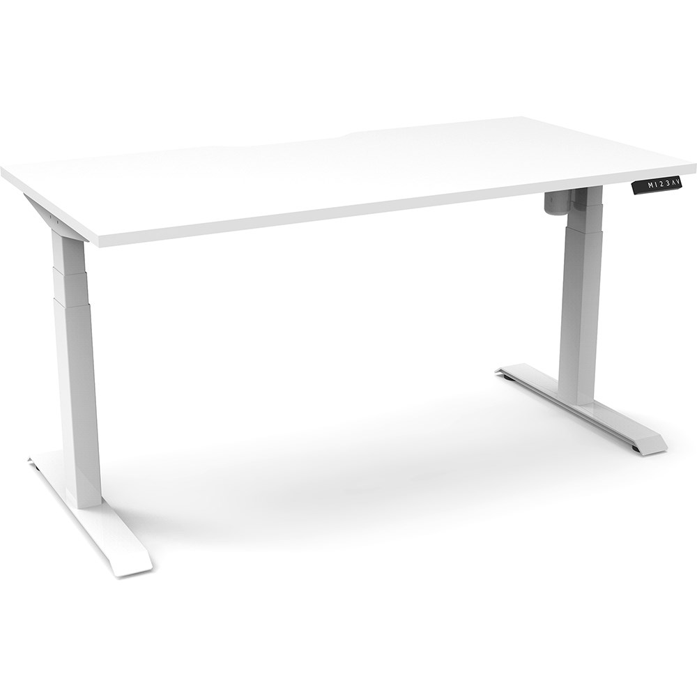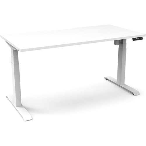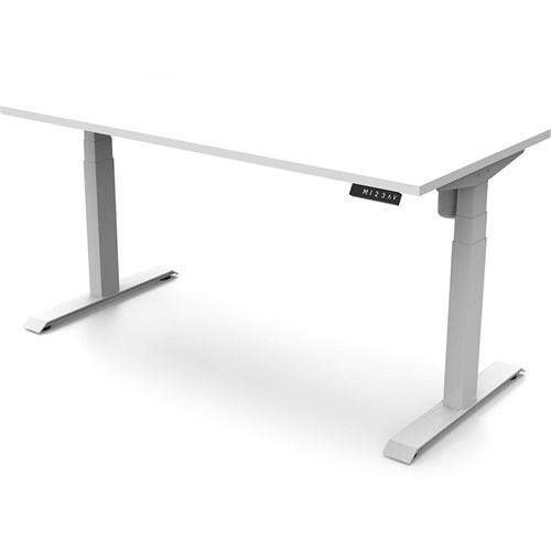 White top with White frame. Unit Dimension: 1500mm W x 750mm D x 620-1270mm H. E0 rated top. Powdercoat base. Digital control panel with 3 pre-set positions, LED display panel, keypad safety lock & reminder alarm setting. Anti-collision technology, noise emission of less than 50DB. Lifting capacity of 80kg with a max speed of 25mm per second. 700mm wide foot size with adjustable leveling feet. 10 Year Manufacturer's Warranty. Delivery, installation and assembly charges may apply to furniture. Please enquire to confirm.