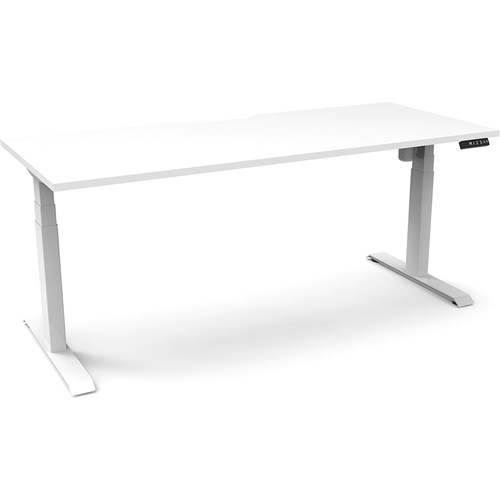 White top with White frame. Unit Dimension: 1800mm W x 750mm D x 620-1270mm H. E0 rated top. Powdercoat base. Digital control panel with 3 pre-set positions, LED display panel, keypad safety lock & reminder alarm setting. Anti-collision technology, noise emission of less than 50DB. Lifting capacity of 80kg with a max speed of 25mm per second. 700mm wide foot size with adjustable leveling feet. 10 Year Manufacturer's Warranty. Delivery, installation and assembly charges may apply to furniture. Please enquire to confirm.