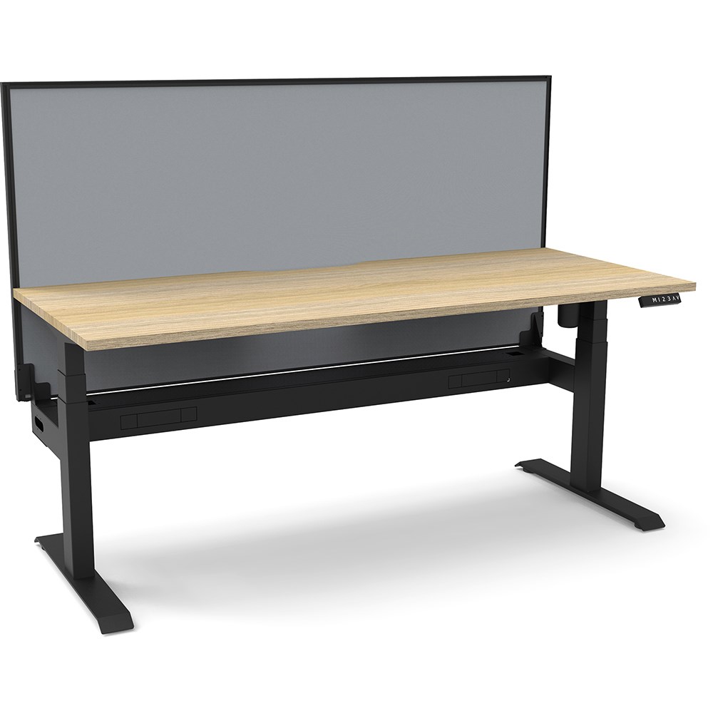 Natural Oak top with Black frame. Unit Dimension: 1200mm W x 750mm D x 1330mm H. 620-1270mm height range for desk. E0 rated top. Powdercoat base. Digital control panel with 3 pre-set positions, LED display panel, keypad safety lock & reminder alarm setting. Anti-collision technology, noise emission of less than 50DB. Lifting capacity of 80kg with a max speed of 25mm per second. 700mm wide foot size with adjustable leveling feet. Comes with 30mm thick privacy screens and cable tray for cable management. 10 Year Manufacturer's Warranty. Delivery, installation and assembly charges may apply to furniture. Please enquire to confirm.