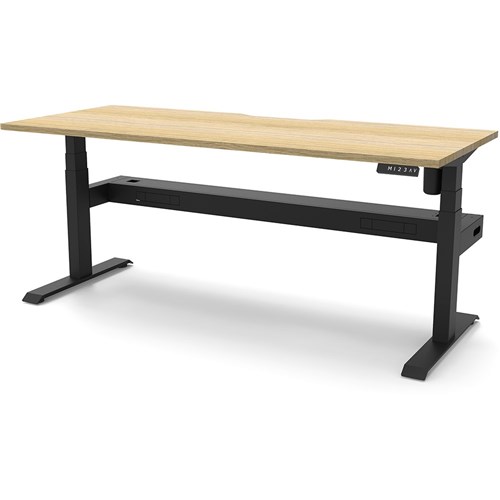 Natural Oak top with Black frame. Unit Dimension: 1200mm W x 750mm D x 620-1270mm H. Comes with cable tray for cable management. E0 rated top. Powdercoat base. Digital control panel with 3 pre-set positions, LED display panel, keypad safety lock & reminder alarm setting. Anti-collision technology, noise emission of less than 50DB. Lifting capacity of 80kg with a max speed of 25mm per second. 700mm wide foot size with adjustable leveling feet. 10 Year Manufacturer's Warranty. Delivery, installation and assembly charges may apply to furniture. Please enquire to confirm.
