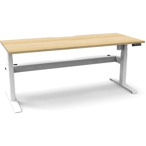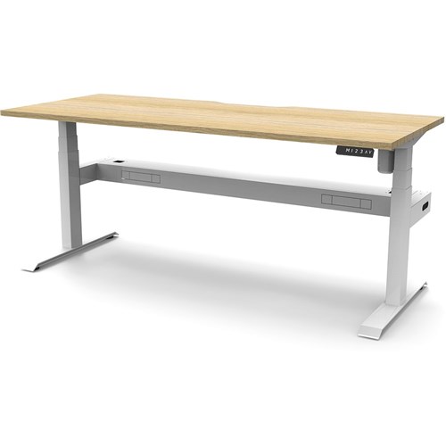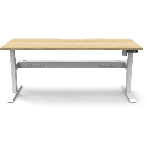 Natural Oak top with White frame. Unit Dimension: 1200mm W x 750mm D x 620-1270mm H. Comes with cable tray for cable management. E0 rated top. Powdercoat base. Digital control panel with 3 pre-set positions, LED display panel, keypad safety lock & reminder alarm setting. Anti-collision technology, noise emission of less than 50DB. Lifting capacity of 80kg with a max speed of 25mm per second. 700mm wide foot size with adjustable leveling feet. 10 Year Manufacturer's Warranty. Delivery, installation and assembly charges may apply to furniture. Please enquire to confirm.