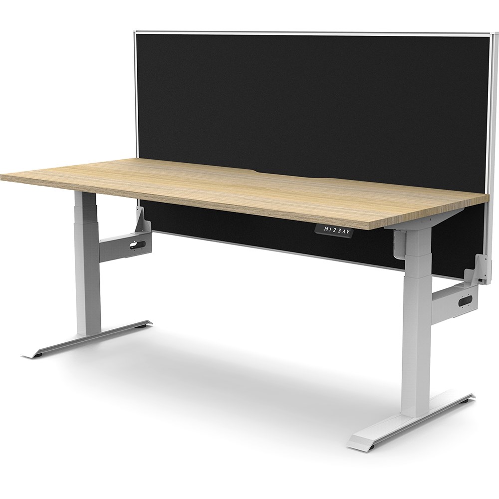 Natural Oak top with White frame. Unit Dimension: 1200mm W x 750mm D x 1330mm H. 620-1270mm height range for desk. E0 rated top. Powdercoat base. Digital control panel with 3 pre-set positions, LED display panel, keypad safety lock & reminder alarm setting. Anti-collision technology, noise emission of less than 50DB. Lifting capacity of 80kg with a max speed of 25mm per second. 700mm wide foot size with adjustable leveling feet. Comes with 30mm thick privacy screen. 10 Year Manufacturer's Warranty. Delivery, installation and assembly charges may apply to furniture. Please enquire to confirm.