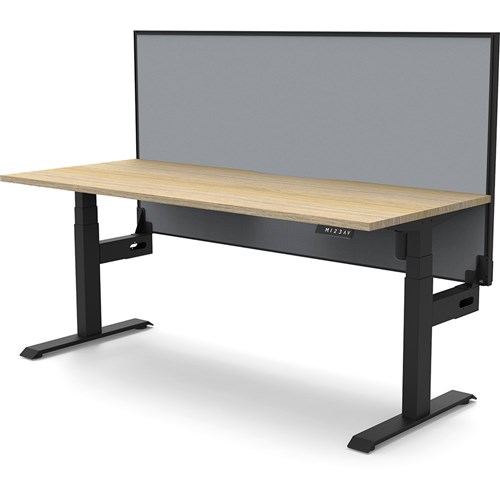 Natural Oak top with Black frame. Unit Dimension: 1500mm W x 750mm D x 1330mm H. 620-1270mm height range for desk. E0 rated top. Powdercoat base. Digital control panel with 3 pre-set positions, LED display panel, keypad safety lock & reminder alarm setting. Anti-collision technology, noise emission of less than 50DB. Lifting capacity of 80kg with a max speed of 25mm per second. 700mm wide foot size with adjustable leveling feet. Comes with 30mm thick privacy screen. 10 Year Manufacturer's Warranty. Delivery, installation and assembly charges may apply to furniture. Please enquire to confirm.