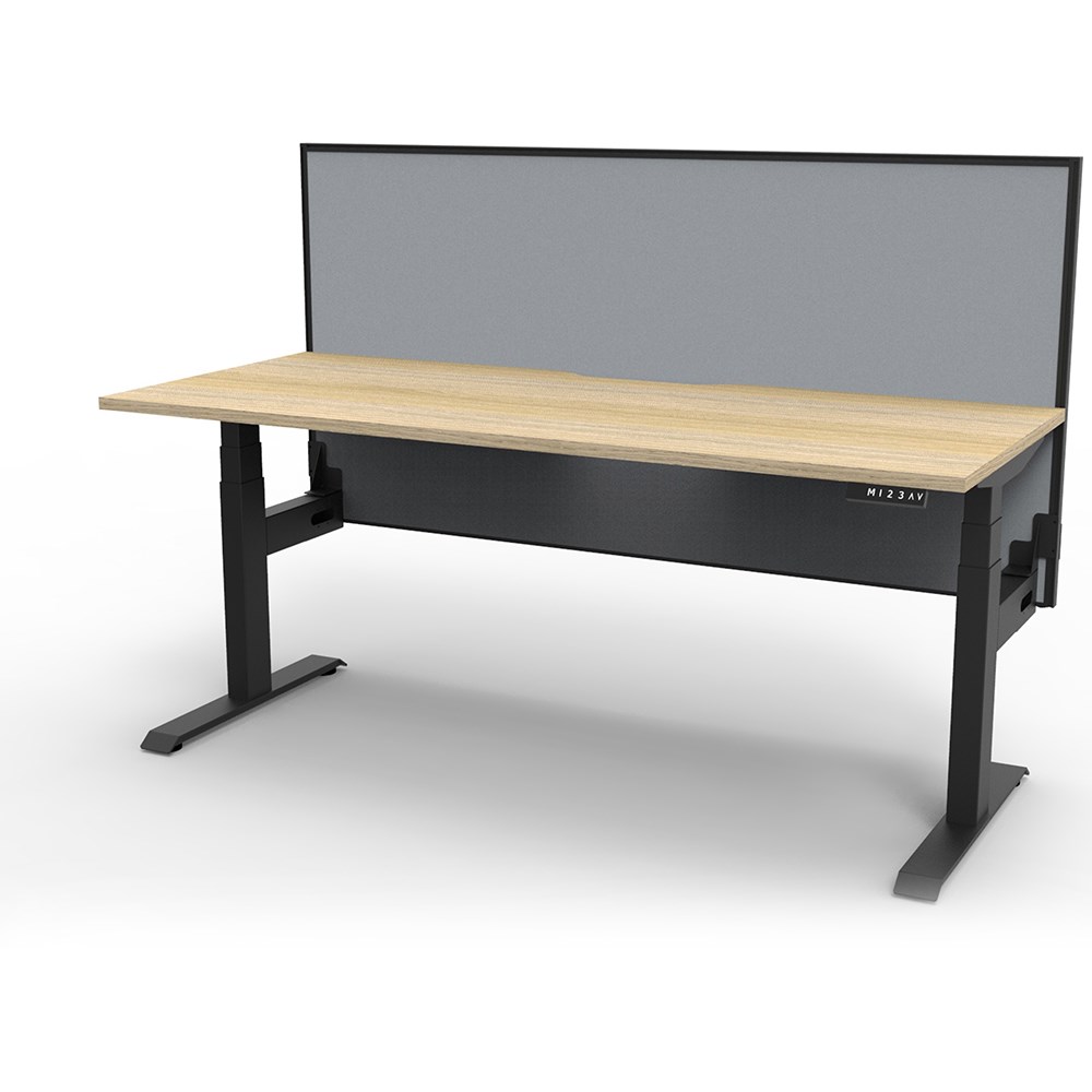 The entire Boost+ range has now been performance tested and is compliant to the AFRDI standards for general safety, strength, durability and stability in all sizes and configurations based on AS/NZS 4442:201. Natural Oak top Black frame. Unit Dimensions: 1200W x 750D x 1330mmH. 270mm table top height. Single workstation with screen. E0 rated top. Powder coat base. Keypad safety lock and reminder alarm setting. Digital control panel with 3 pre-set positions and LED display panel. Anti- collision and anti-tilt technology. 120kg weight loading capacity. 10 Year Manufacturer's Warranty.