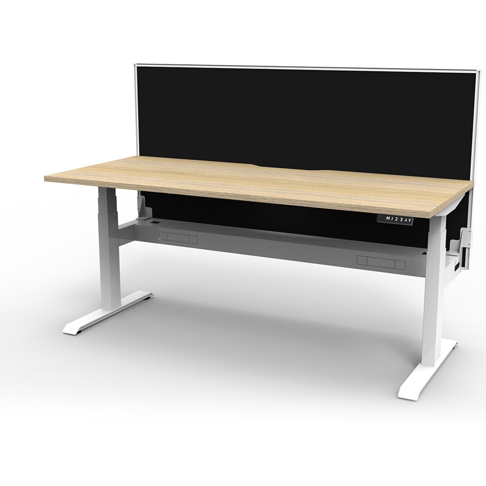 The entire Boost+ range has now been performance tested and is compliant to the AFRDI standards for general safety, strength, durability and stability in all sizes and configurations based on AS/NZS 4442:201. Natural Oak top White frame. Unit Dimensions: 1800W x 750D x 1330mmH. 1270mm table top height. E0 rated top, powder coated base. Keypad safety lock and reminder alarm setting. Digital control panel with 3 pre-set positions and LED display panel. Anti- collision and anti-tilt technology. Dual motor 3 stage motorised legs. 120kg weight loading capacity. 10 Year Manufacturer's Warranty.
