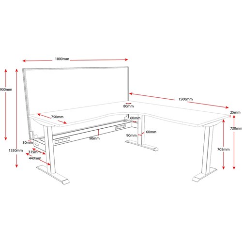• Unit Dimension: 1800/1500mm W x 750mm D x 730mm H.