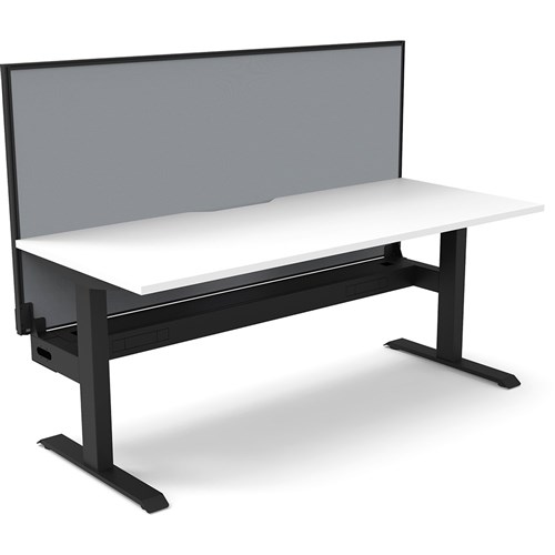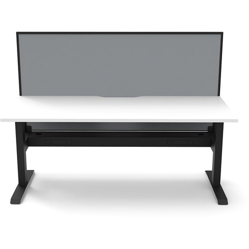 Fixed height desks to match the Boost+ range. White top with Black frame. Unit Dimension: 1500mm W x 750mm D x 1330mm H. Desk height 730mm. E0 rated top. Powdercoat base. Comes with 30mm thick privacy screens and cable tray for cable management. 10 Year Manufacturer's Warranty. Delivery, installation and assembly charges may apply to furniture. Please enquire to confirm.