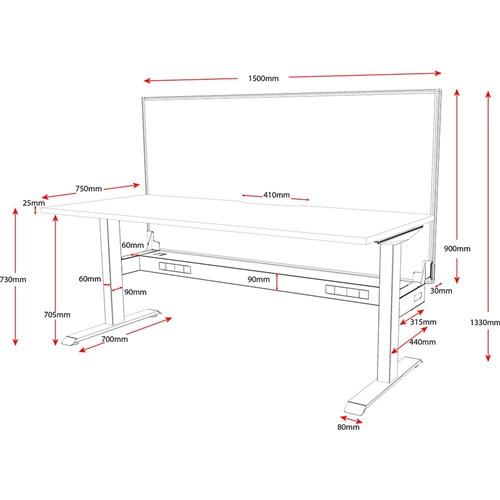 • Unit Dimension: 1500mm W x 750mm D x 730mm H.