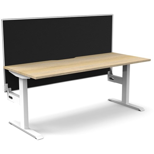 Fixed height desks to match the Boost+ range. Natural Oak top with White frame. Unit Dimension: 1500mm W x 750mm D x 1330mm H. Desk height 730mm. E0 rated top. Powdercoat base. Comes with 30mm thick privacy screen. 10 Year Manufacturer's Warranty. Delivery, installation and assembly charges may apply to furniture. Please enquire to confirm.