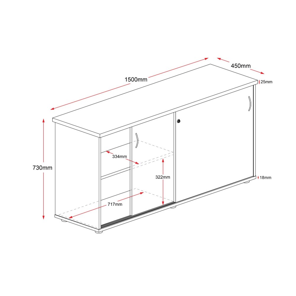 Rapidline Credenza Sliding Doors 1500W x 450D x 730mmH Cherry And Ironstone