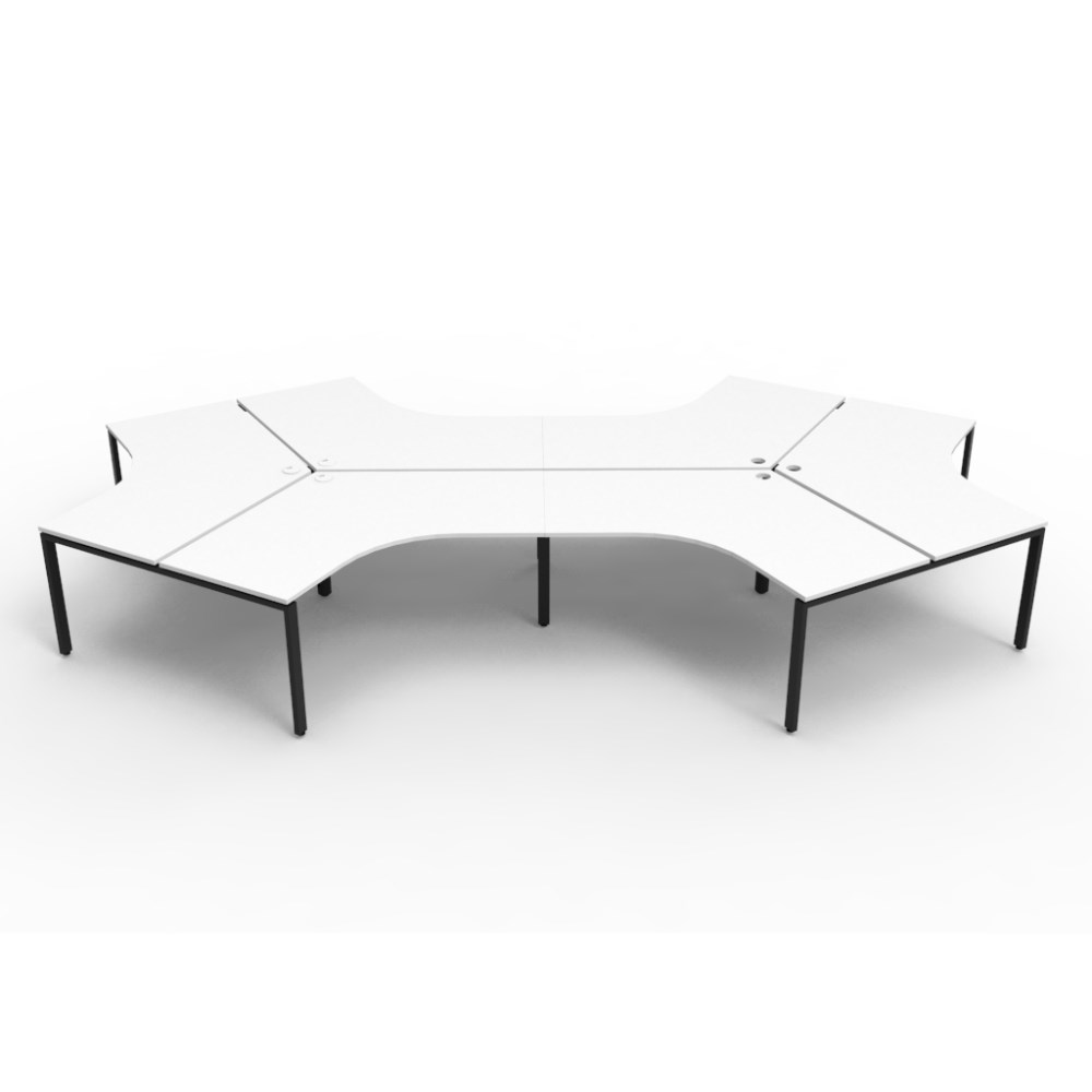 Overall Dimensions: 2866W x 2480D x 730mmH. Per User Dimensions: 1205W x 1205D x 730mmH. White worksurface with a 60 x 30mm powder coated black Profile leg underframe. 1 x 80mm diameter cable entry hole. 30mm cable access void in between double sided users. Infill rail available at additional cost. Dual cross bar for added stability. E0 enviroboard melamine worksurface. Adjustable leveling feet. 5 Year Manufacturer's Warranty. Delivery, installation and assembly charges may apply to furniture. Please enquire to confirm.