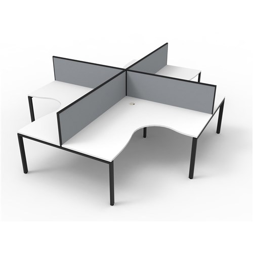 Maximise space and create an efficient working environment with Deluxe Rapid Infinity. Configure multiple workstations together to create pods of desks. Overall Including Screen: 3060mm W x 3030mmW x 780mm D x 1200mm H. Per User: 1800mm W x 1500mmW x 750mm D. Desk Height: 730mm. Includes pinnable privacy screen in grey fabric with matching black powder coated frame. 495mm H x 30mm T. Natural White worksurface with Black Profile Leg frame. 60mm x 30mm Profile Leg adds a minimalist look to each workstation. E0 Enviroboard and deeper 750mm top. Double support rail for extra strength. 1 x 80mm diameter cable entry hole. 5 Year Manufacturer's Warranty. Delivery, installation and assembly charges may apply to furniture. Please enquire to confirm.