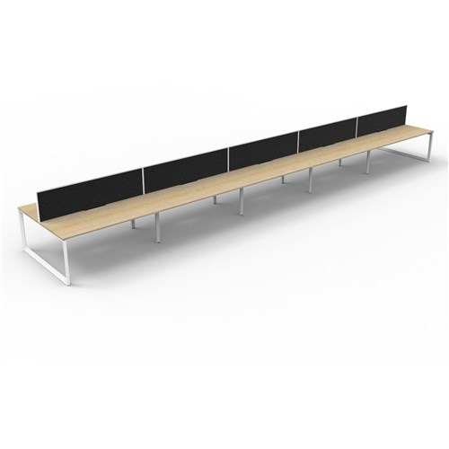 Maximise space and create an efficient working environment with Deluxe Rapid Infinity. With scallop for cable access, and a recessed leg to create full leg access in long runs of workstations. Overall Including Screen: 9000mm W x 1530mm D x 1200mm H. Per User: 1800mm W x 750mm D. Desk Height: 730mm. Includes pinnable privacy screen in black fabric with matching white powder coated frame. 495mm H x 30mm T. With 410mm W x 50mm D Scallop Cable Access. 60mm x 45mm bevelled edge powder coated Loop Leg underframe. Recessed leg to create full leg access in long runs of workstations. Scalloped top for easy wire management. Double support rail for extra strength. Adjustable levelling feet. E0 Enviroboard. 5 Year Manufacturer's Warranty. Delivery, installation and assembly charges may apply to furniture. Please enquire to confirm.
