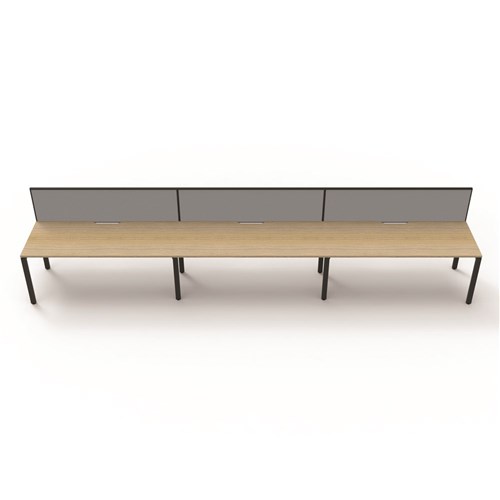 Maximise space and create an efficient working environment with Deluxe Rapid Infinity. Configure multiple workstations together to create pods of desks. Overall: 5400mm W x 780mm D x 1200mm H (including screen). Per User: 1800mm W x 750mm D x 730mm H. 495mm H x 30mm T pinnable privacy screen upholstered in grey fabric with matching black powder coat extrusion. Natural Oak worksurface with 410mm W x 50mm D scallop cable access. 60mm x 30mm Profile Leg adds a minimalist look to each workstation. Deeper 750mm top. Double support rail for extra strength. E0 Enviroboard. 5 Year Manufacturer's Warranty. Delivery, installation and assembly charges may apply to furniture. Please enquire to confirm.
