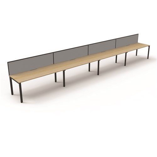 Maximise space and create an efficient working environment with Deluxe Rapid Infinity. Configure multiple workstations together to create pods of desks. Overall: 7200mm W x 780mm D x 1200mm H (including screen). Per User: 1800mm W x 750mm D x 730mm H. 495mm H x 30mm T pinnable privacy screen upholstered in grey fabric with matching black powder coat extrusion. Natural Oak worksurface with 410mm W x 50mm D scallop cable access. 60mm x 30mm Profile Leg adds a minimalist look to each workstation. Deeper 750mm top. Double support rail for extra strength. E0 Enviroboard. 5 Year Manufacturer's Warranty. Delivery, installation and assembly charges may apply to furniture. Please enquire to confirm.